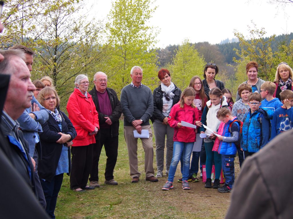 Den Spaten in die Hand nahmen Mitglieder der Partnerschaftsvereinigung, Gäste aus West Lothian sowie dem Hochsauerlandkreis und Kinder des Mittelstufenchores im Gerd-Schüttler-Chor der Musikschule Hochsauerlandkreis, um 45 Eiben im „Briloner Bürgerwald“ zu pflanzen
